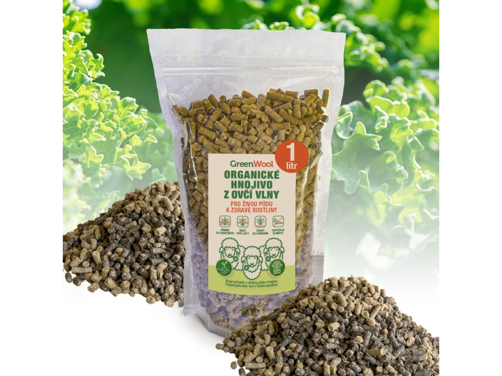 GreenWool peletky z ovčí vlny jsou organické hnojivo vyrobené ze 100 % přírodní, neupravené ovčí vlny pocházející z chovů v České republice. Při výrobě je vlna mechanicky drcena na malé částečky a poté lisována do peletek. Ty jsou přírodním a dlouhodobým zdrojem základních živin pro rostliny, jako jsou dusík, draslík a fosfor. Zadržují vodu, kypří a provzdušňují půdu, což pomáhá rostlinám vytvořit bohatý kořenový systém a podporuje jejich zdravý růst.