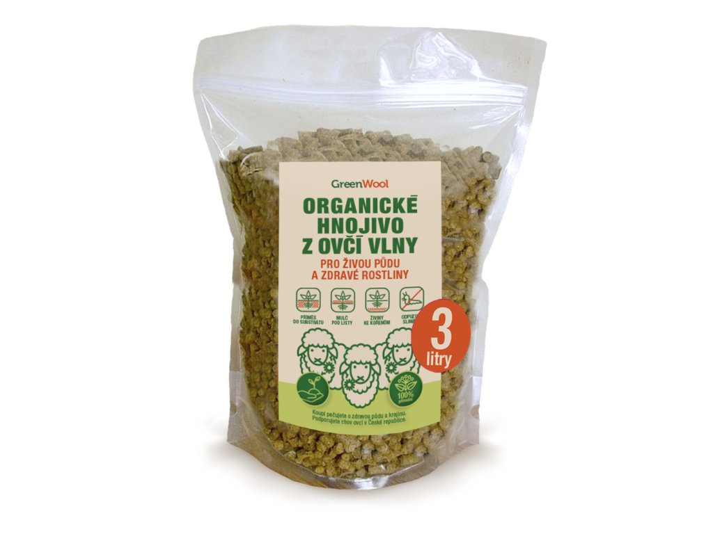 GreenWool peletky z ovčí vlny jsou organické hnojivo vyrobené ze 100% přírodní, neupravené ovčí vlny pocházející z chovů v České republice. Při výrobě je vlna mechanicky drcena na malé částečky a poté lisována do peletek. Tento proces usnadňuje rozklad vlny, aktivuje život mikroorganismů v půdě a umožňuje rostlinám rychlý přístup k živinám.