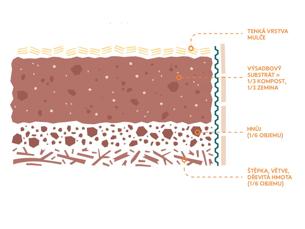 Pokud si vyberete variantu s náplní a s montáží, sestavený záhon na vaší zahradě i naplníme materiálem dle permakulturních principů: